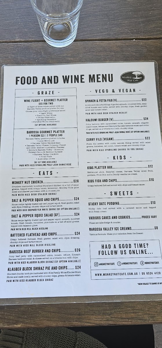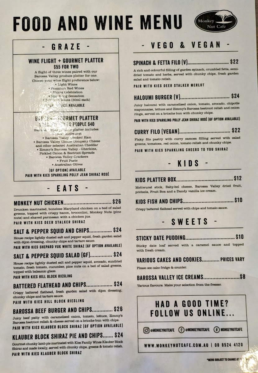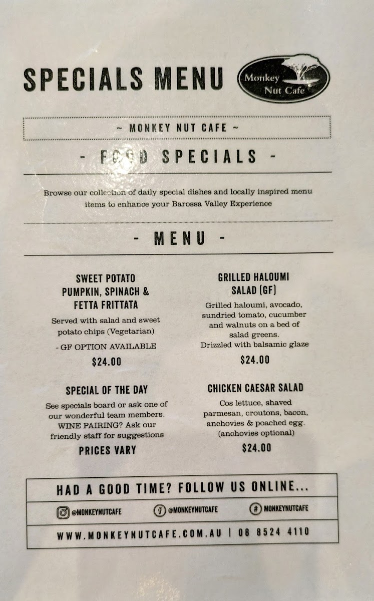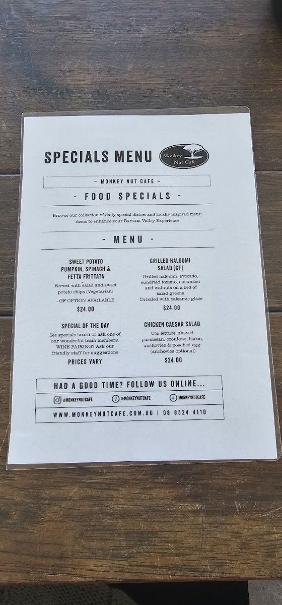 Welcome to Monkey Nut Café - Barossa Valley, nestled in the scenic heart of Lyndoch, Australia. This charming café perfectly harmonizes delightful culinary offerings with stunning vineyard views. The menu showcases a variety of delicious options, from the locally-inspired Shiraz meat pie to the noteworthy monkey nut chicken, drawing rave reviews from visitors.